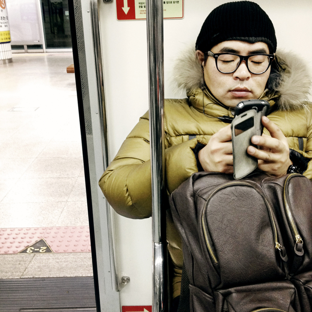 C’est lors d’un voyage professionnel à Séoul, en 2014, que lui vient l’idée de développer le projet Disconnecting People, introspection photographique dans l’univers du métro coréen.